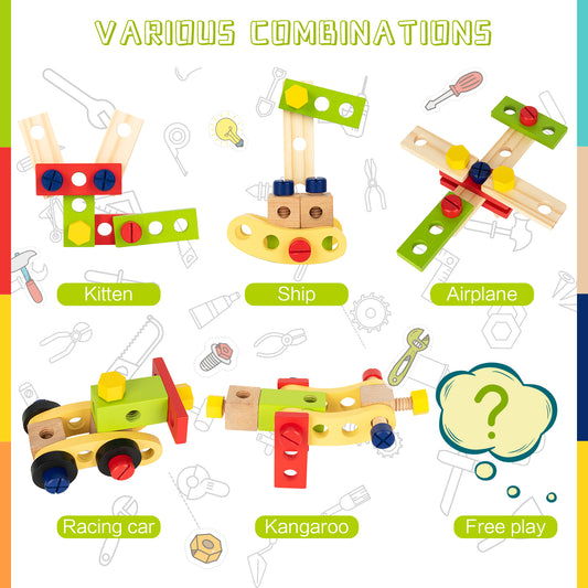 Rundad Wooden Kids Tool Set – 36 PCS Tool Kit Box with Stickers of My First Tools, Montessori Toys for 2 3 4 Year Old Boy, Tool Construction Set for Toddler Ages 3-5